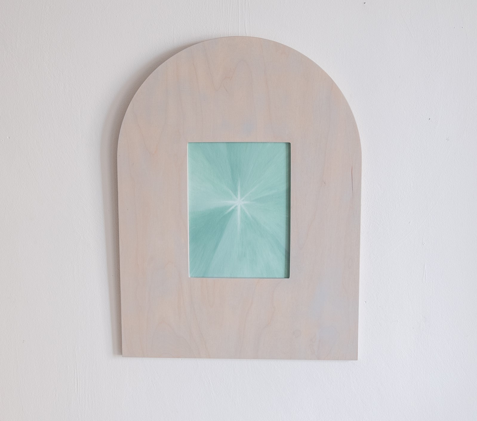 Картина «Ложа» — работа Анны Касс, холст, масло, пастель, размер 30×40 см, 2025 год, цена 30 000 ₽. На изображении тёмно-фиолетовый фон с золотисто-бежевым декоративным элементом по дуге.