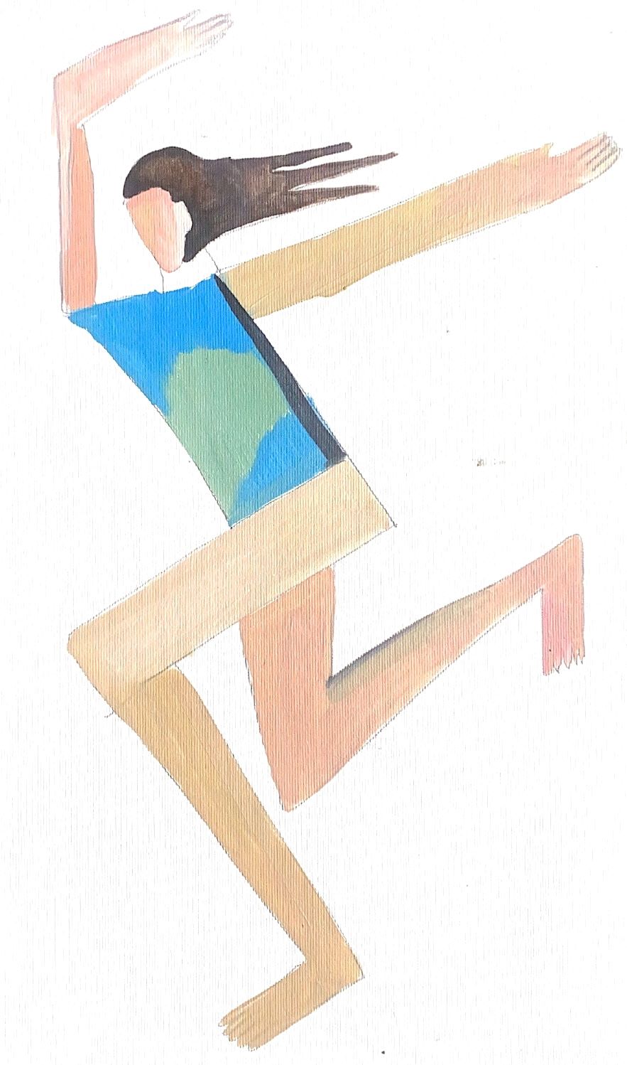 Танцующая фигура, нарисованная ручкой, в минималистичной черно-белой графике