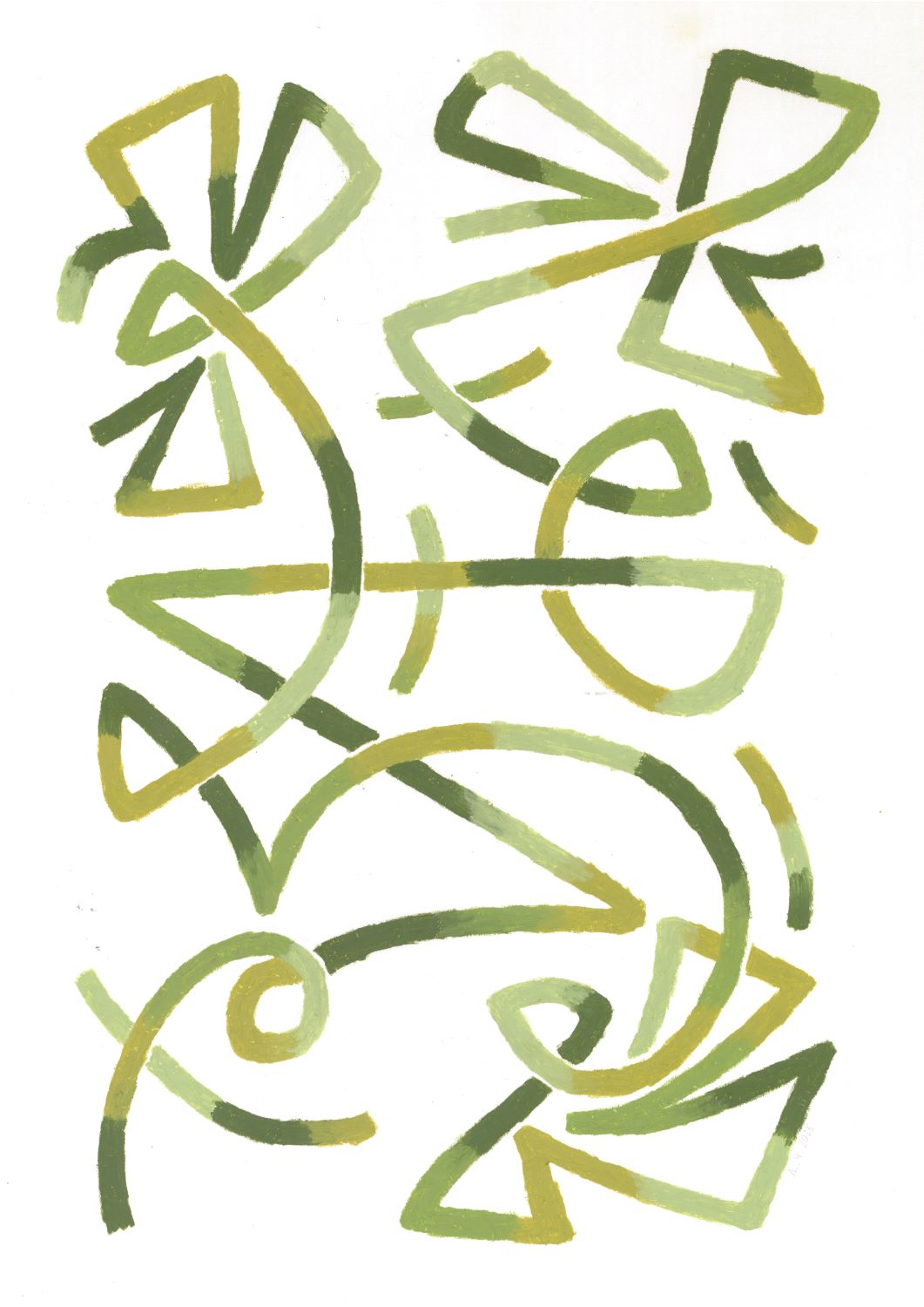 Пастель «Росточек. 4 кадр» — геометрический абстрактный рисунок в зелёно-голубых и коричневых тонах, Дарья Чухрова, 2024
