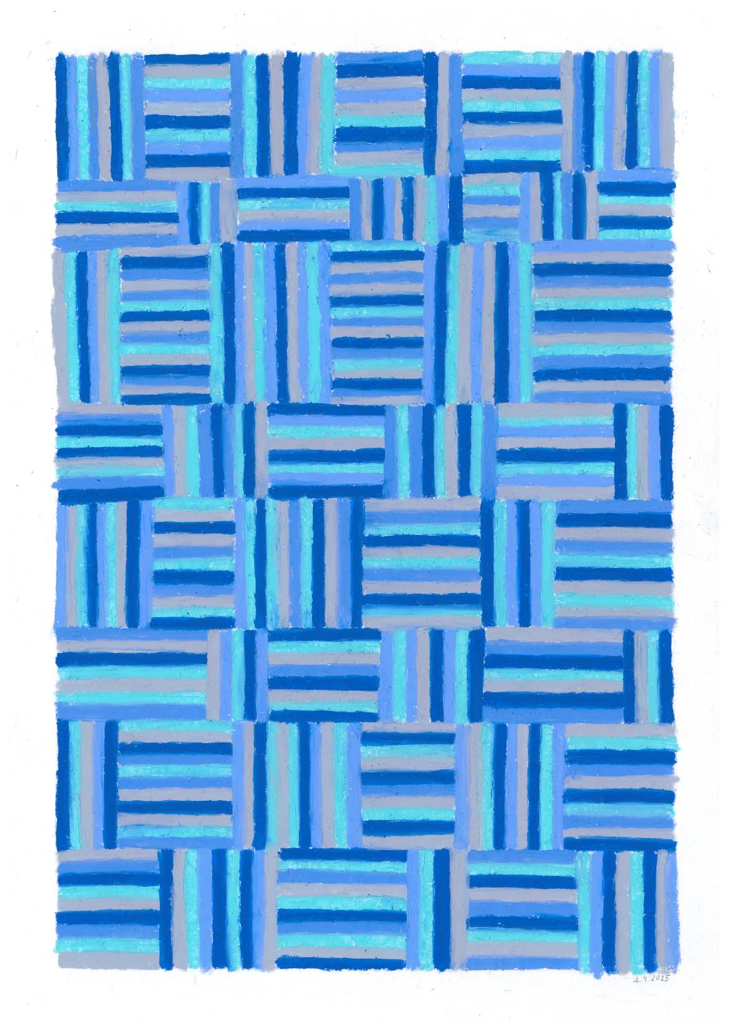 Пастель «Росточек. 4 кадр» — геометрический абстрактный рисунок в зелёно-голубых и коричневых тонах, Дарья Чухрова, 2024