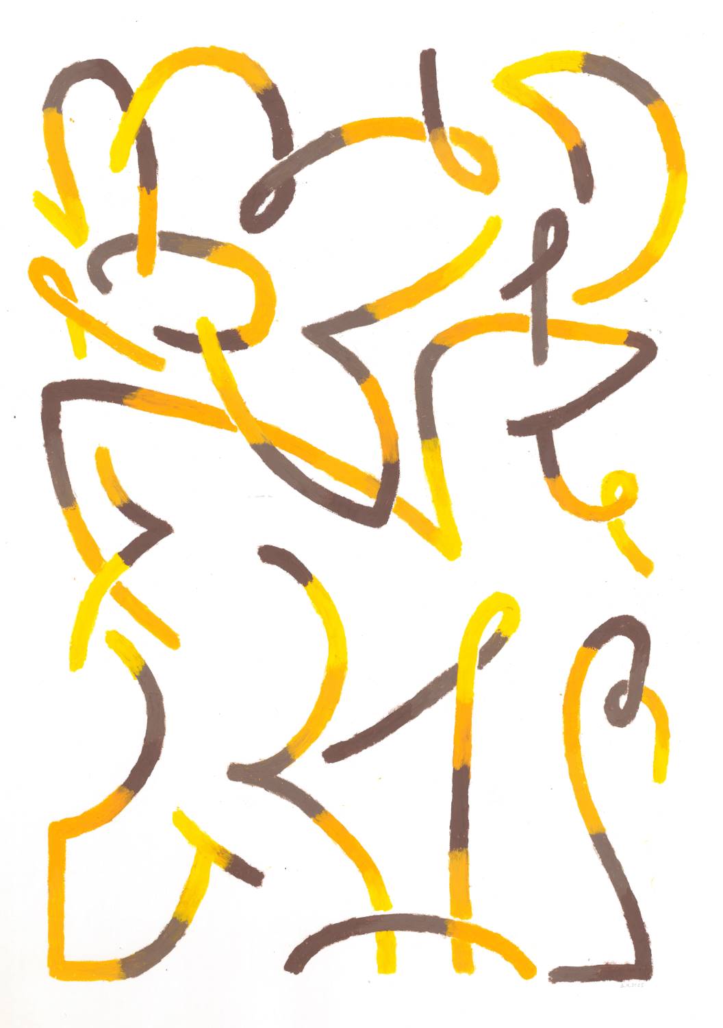 Графика «Романтичная редиска. 11 кадр» — абстракция в оранжевых, голубых и чёрных полосах, Дарья Чухрова, 2023