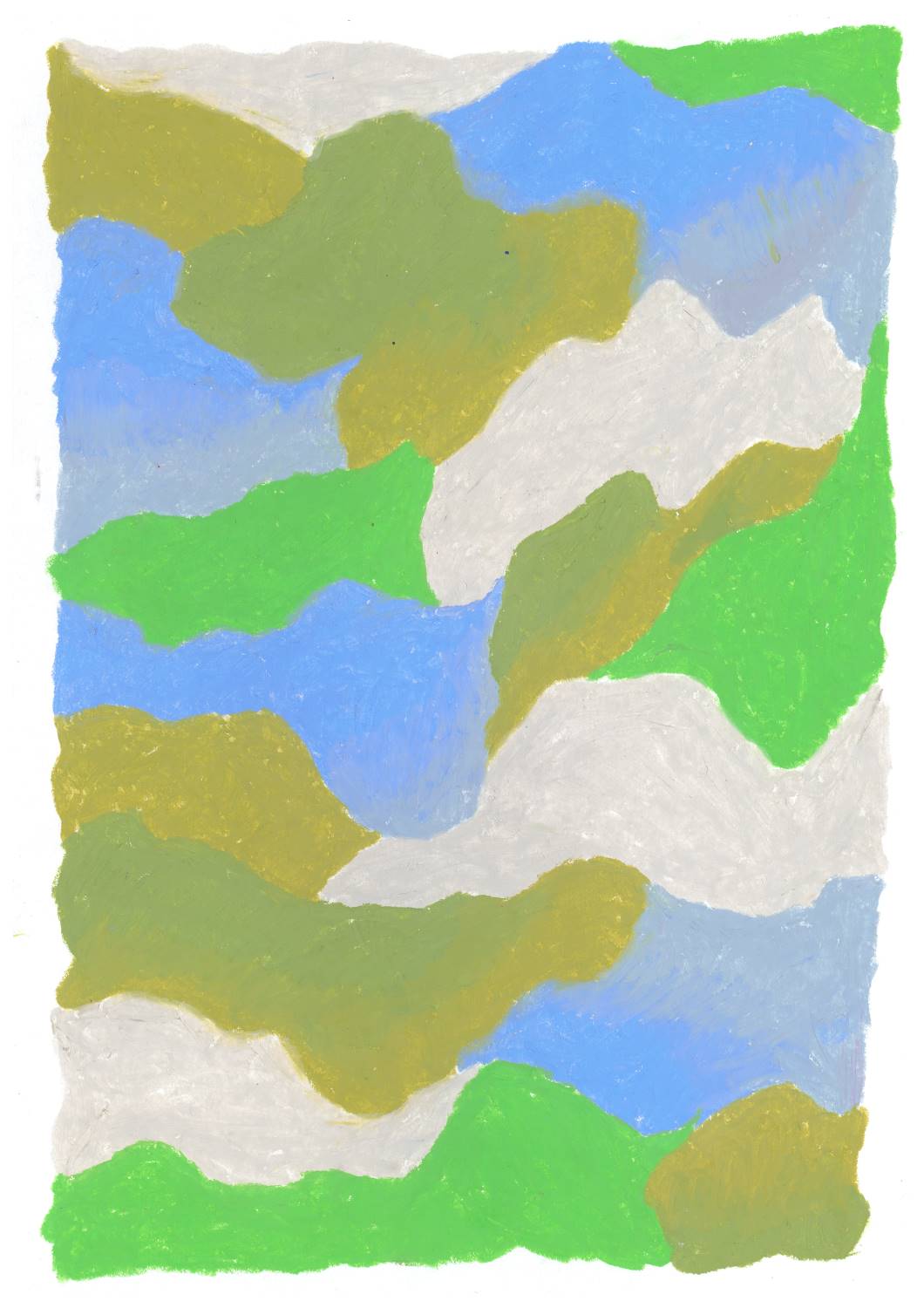 Пастель «Росточек. 4 кадр» — геометрический абстрактный рисунок в зелёно-голубых и коричневых тонах, Дарья Чухрова, 2024
