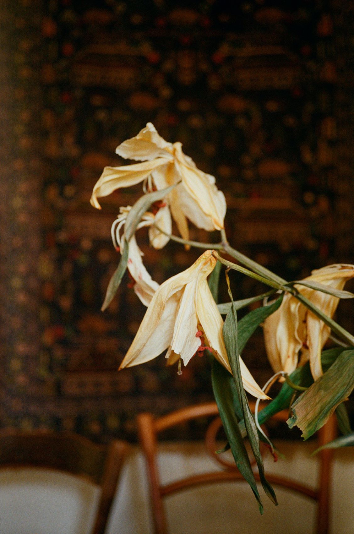 Фотография «Вкус счастья» — цветок в вазе и декоративные объекты на жёлтом фоне