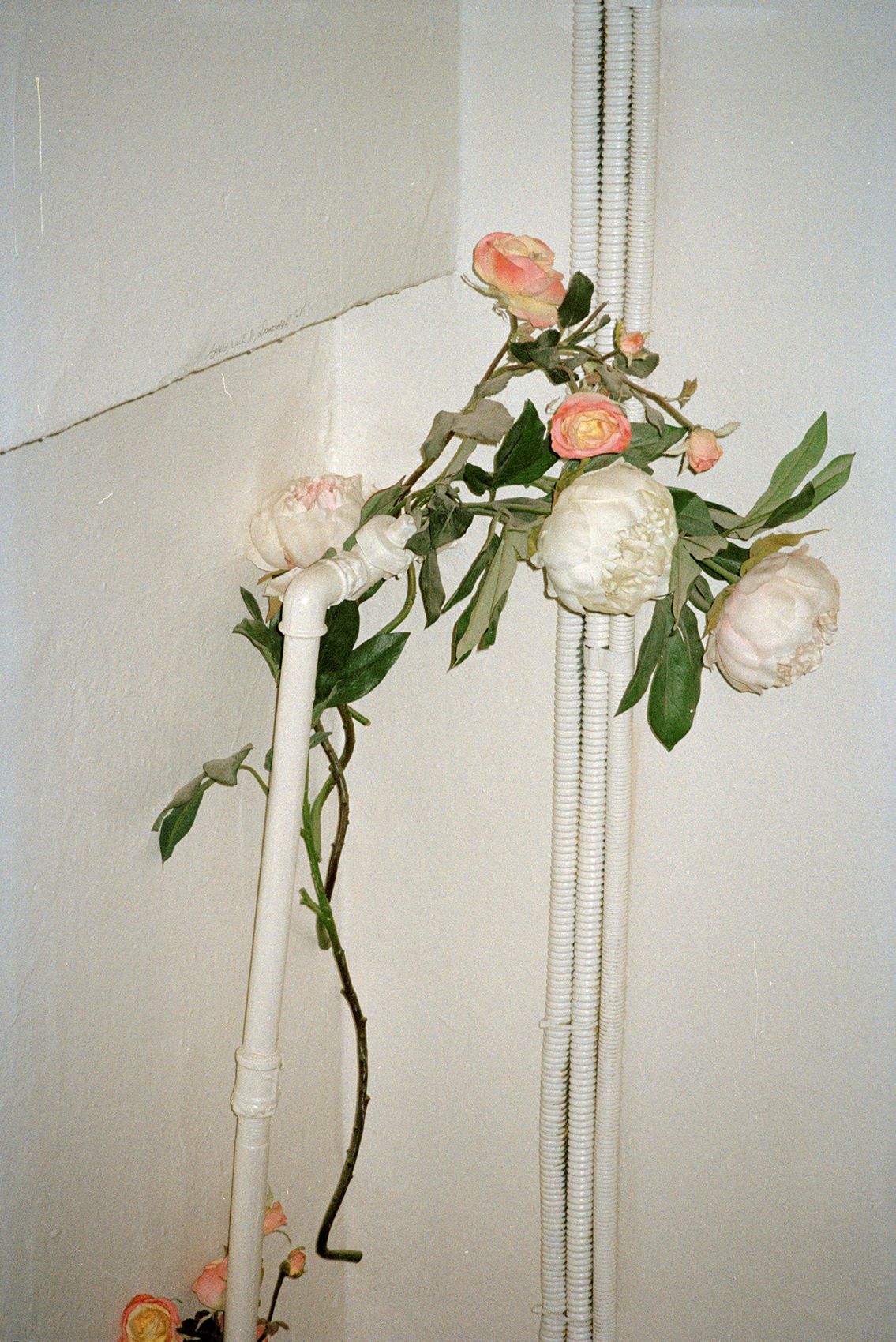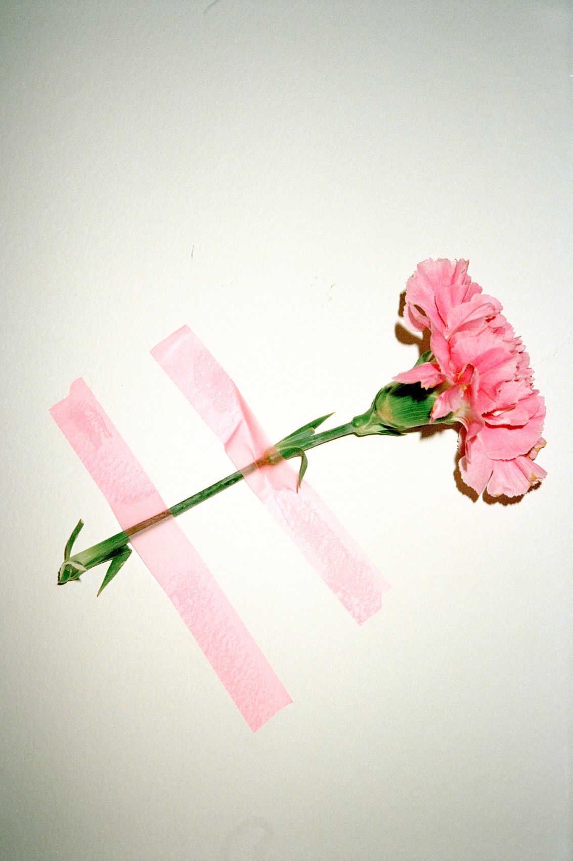 Арт-фотография «Место для побега #6» — белые цветы на асфальте с тенью рук