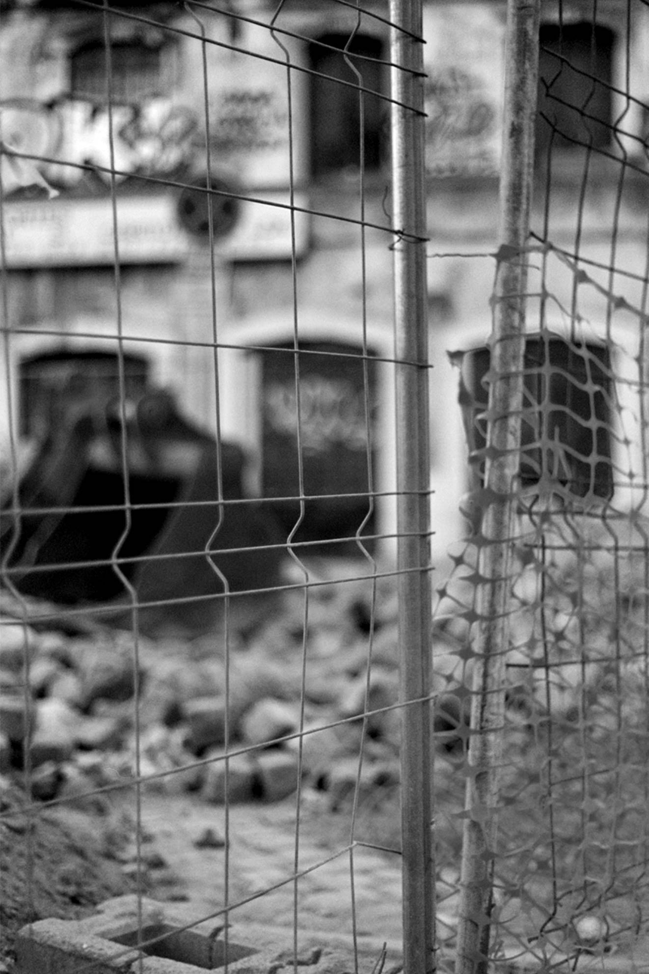 Цветы, зажатые пластиковыми хомутами на фоне граффити. Фото Anastasia Fainberg, 2025, арт-фотография