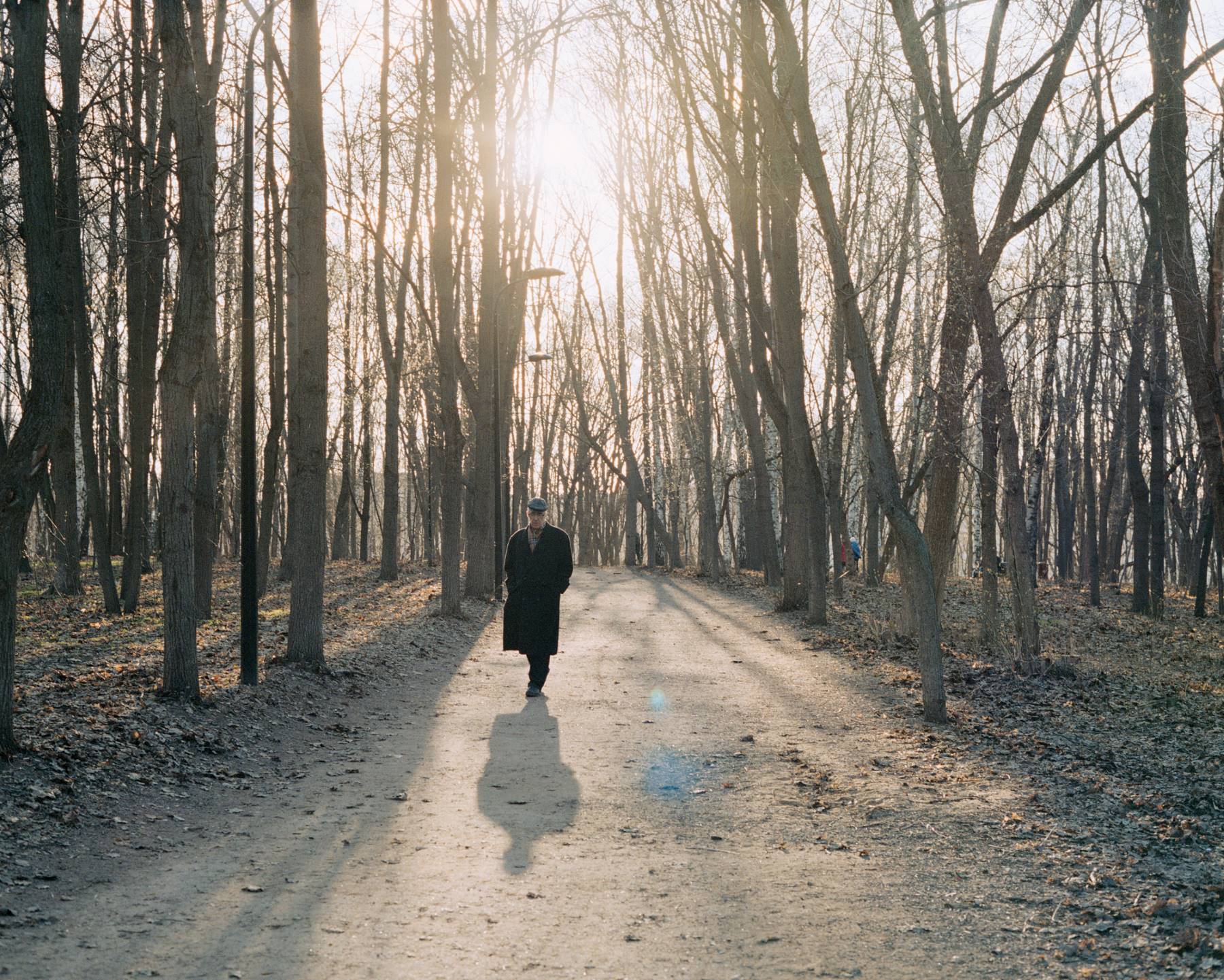 Пожилой мужчина с собакой на поводке на улице Рейкьявика, Леонид Сорокин, C-print, 2018