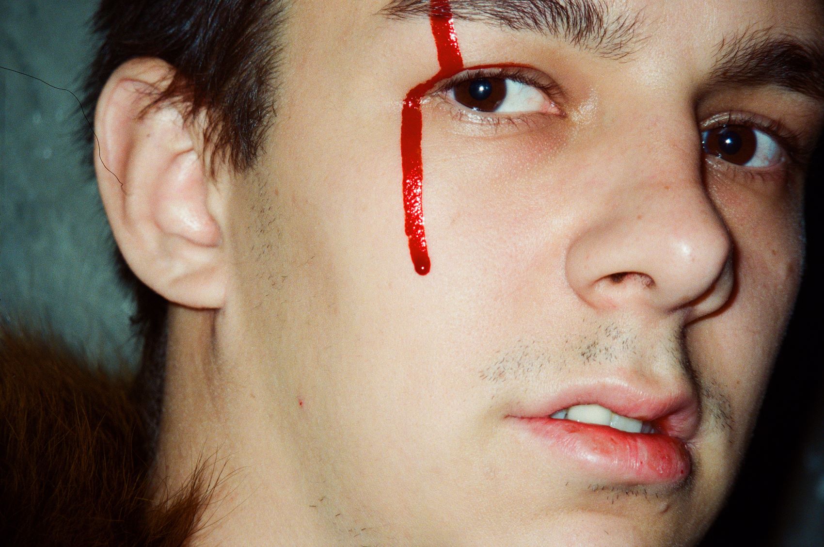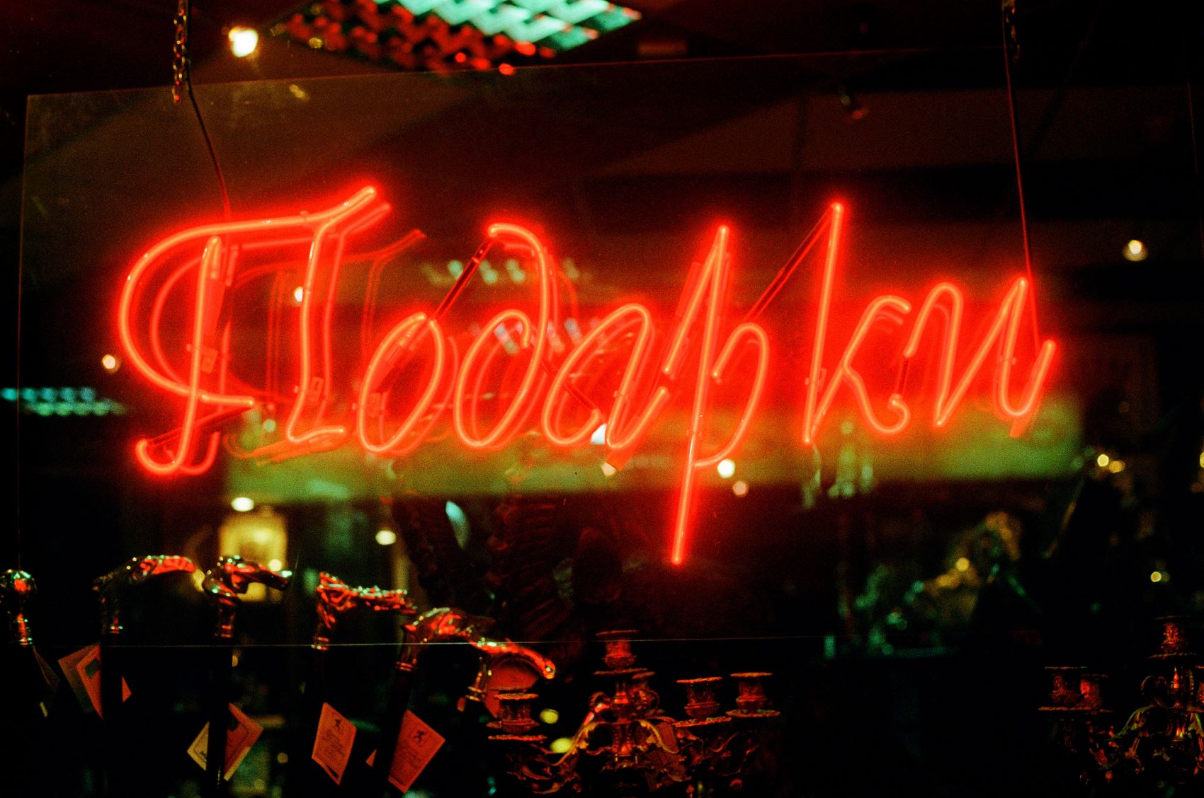 Пожилой мужчина у закрытого кафе с граффити, улица Флоренции, C-print, Леонид Сорокин, 2014
