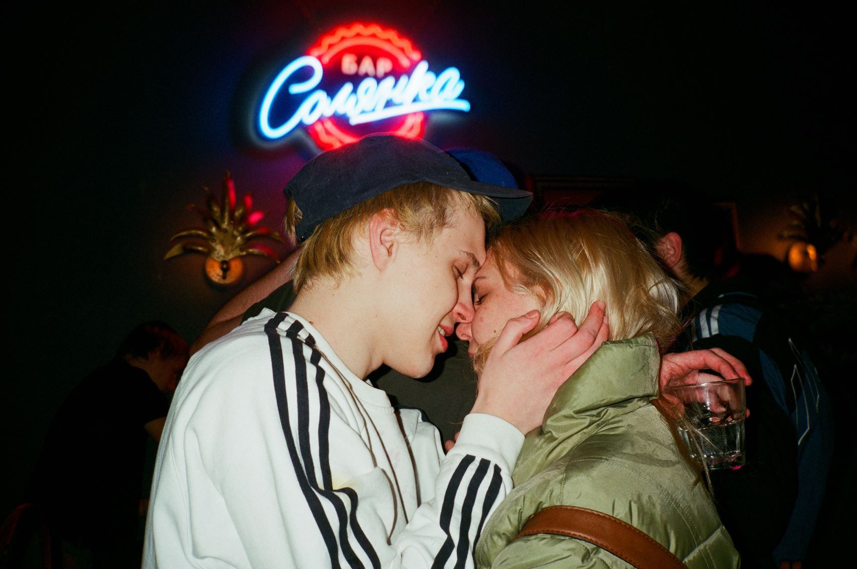 Коллаж: лыжники, городской пейзаж, пара, фасад кафе, вода и небо, серия «Своё место», 2023