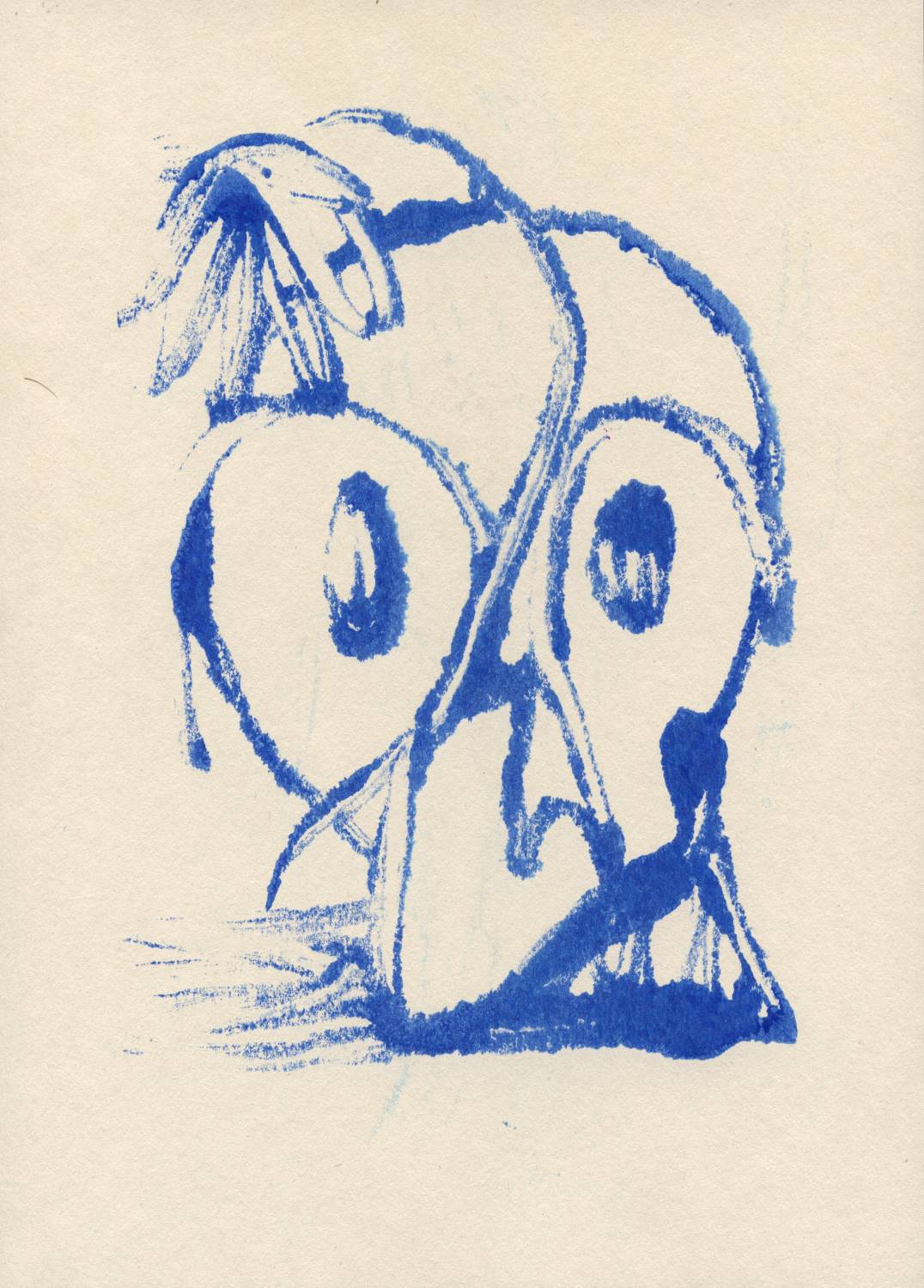 “Монотипия Фавн 4” — отпечаток в технике монотипии, бумага, 42×29,7 см, абстрактное синее изображение, цена 55 000 ₽.