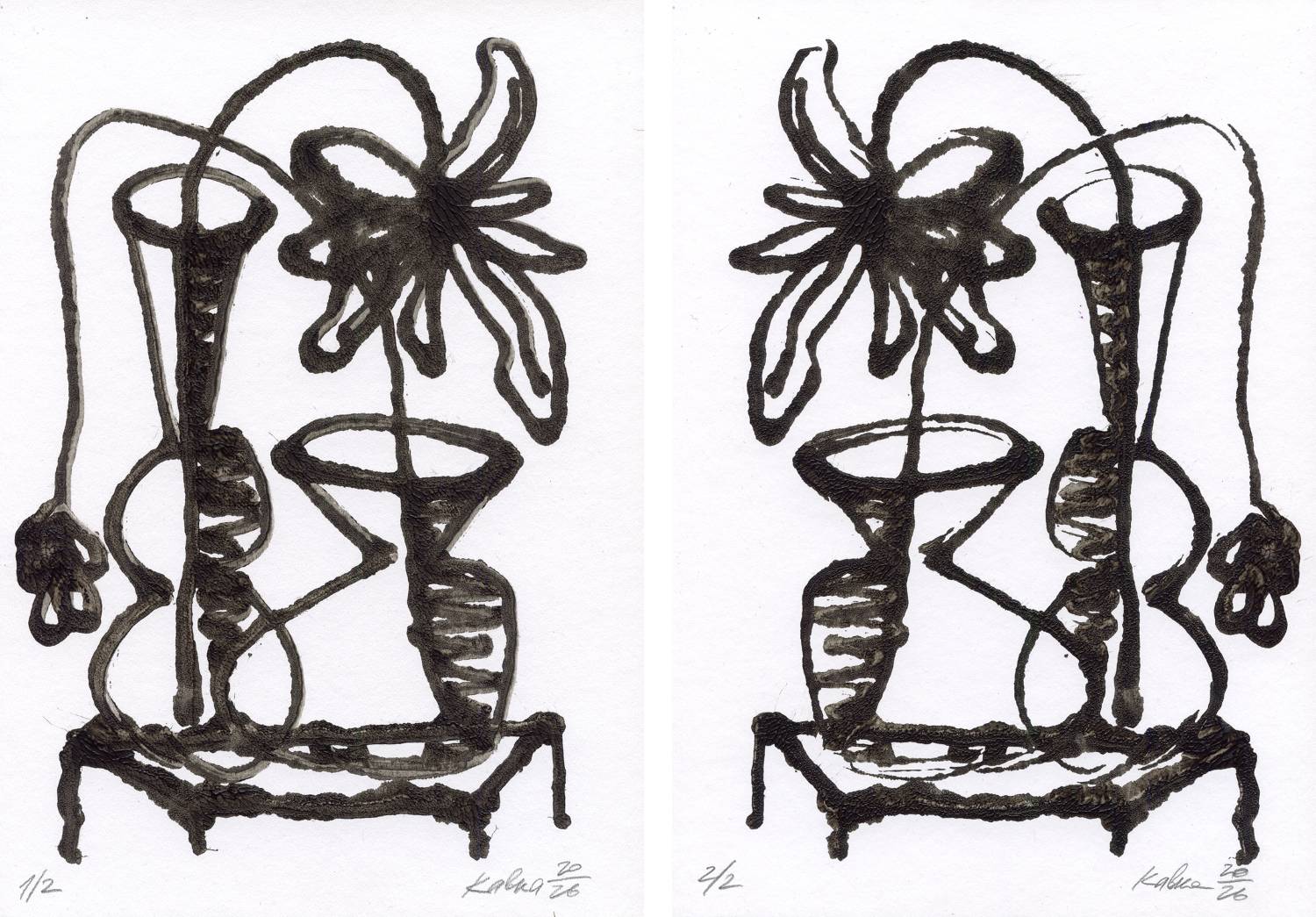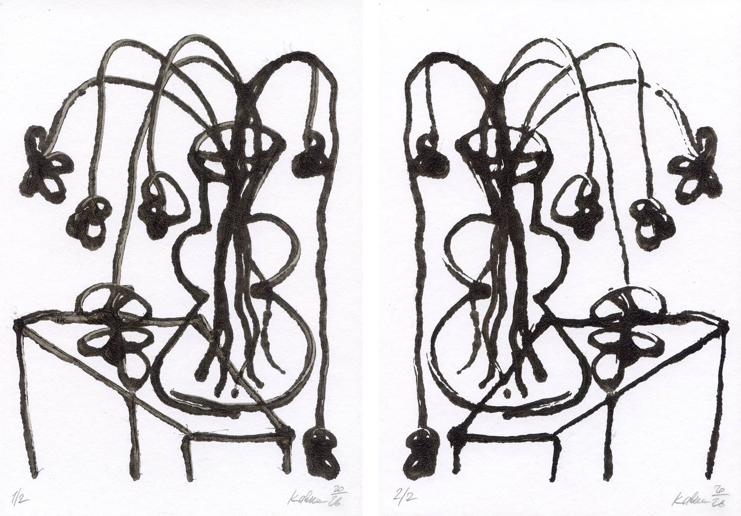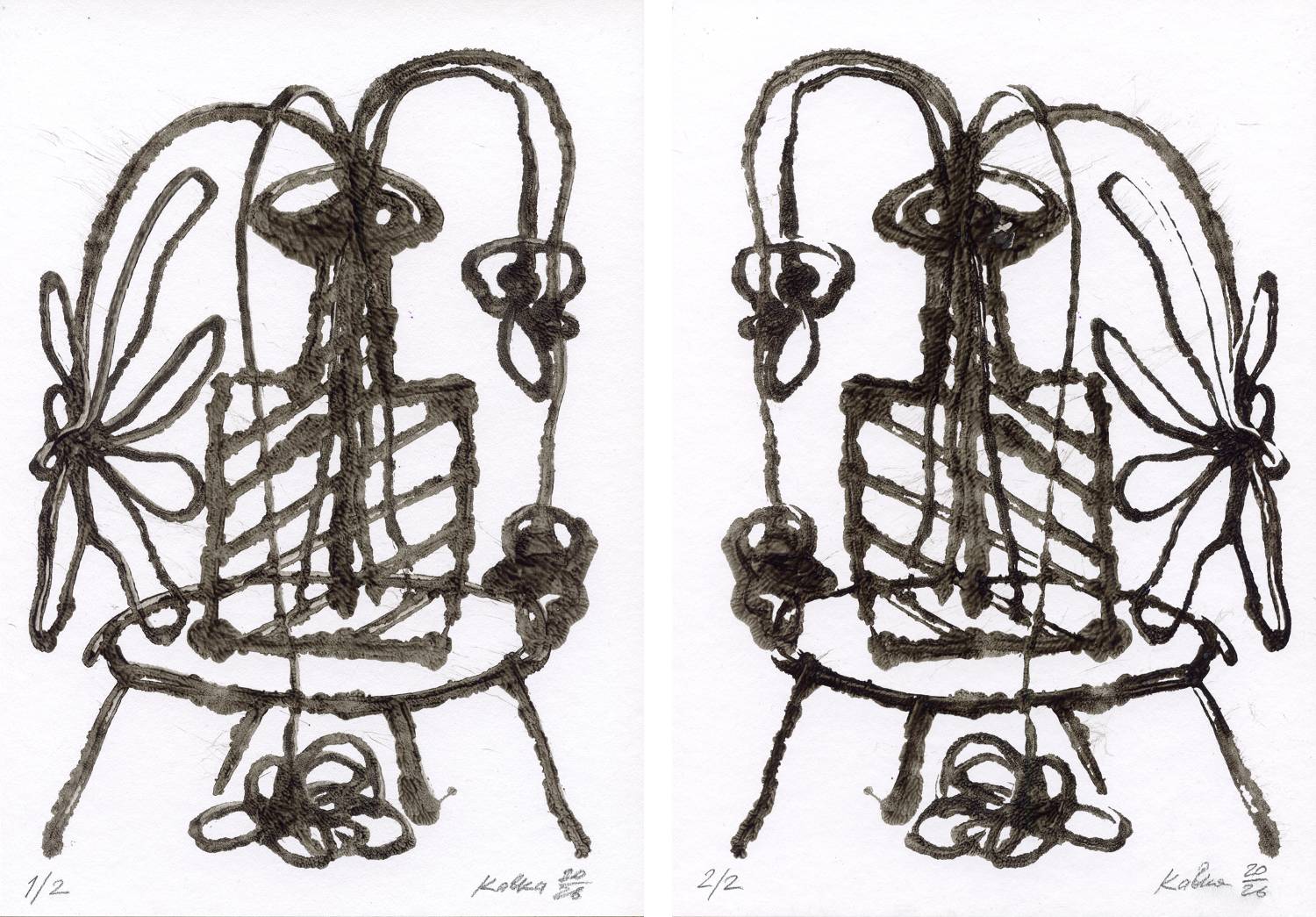 Фигура на стуле с баскетбольным кольцом — рисунок из серии «Друзья» Дмитрия Кавки