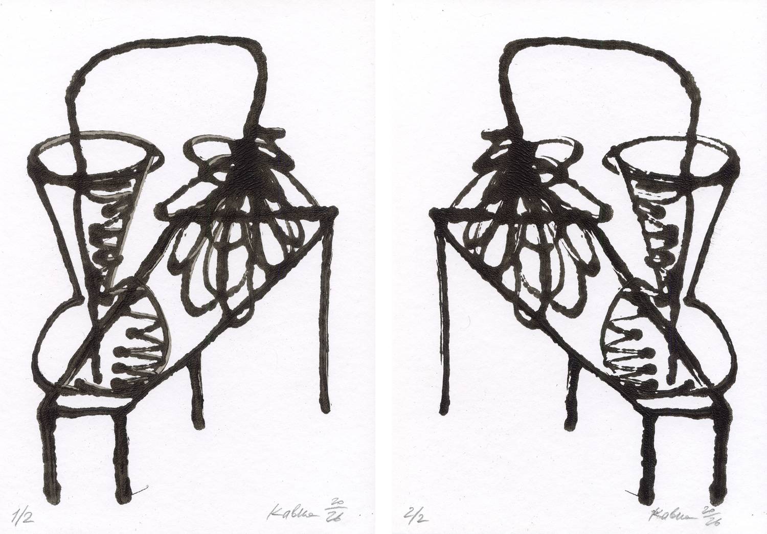 Монотипия.2 зеркальных отпечатка. Бумага, промышленная краска. Уникальное произведение. Россия, 2026.