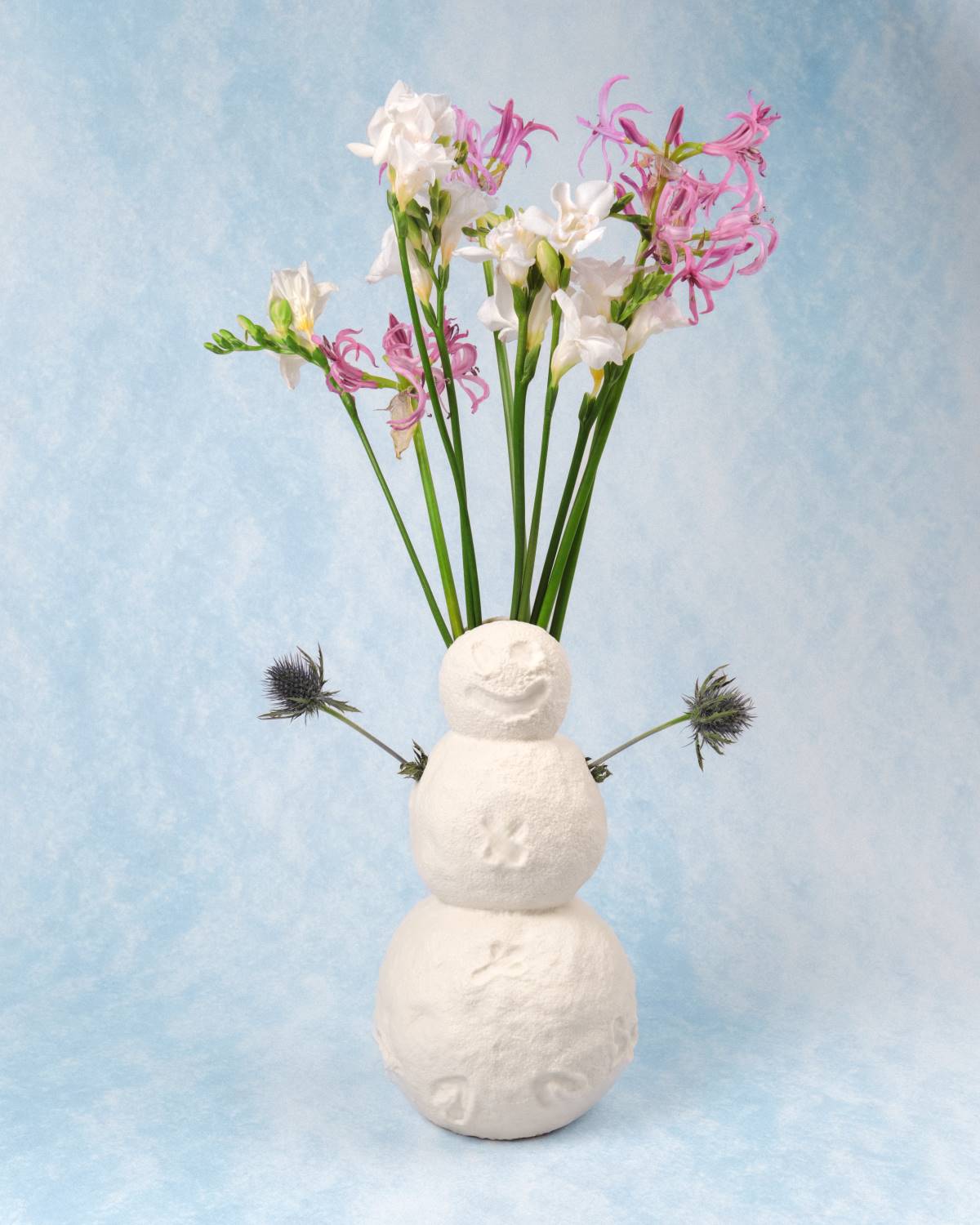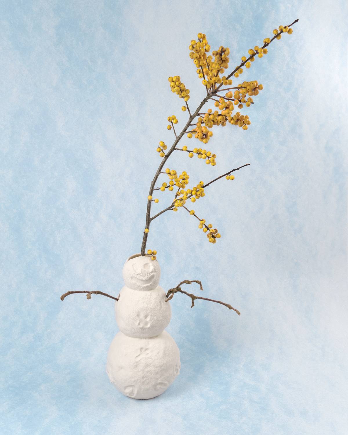Теперь украшать снеговика можно дома, не рискуя заморозить цветы и замёрзнуть самому. Ваза в форме снеговика имеет проёмы для растений сверху и по бокам.