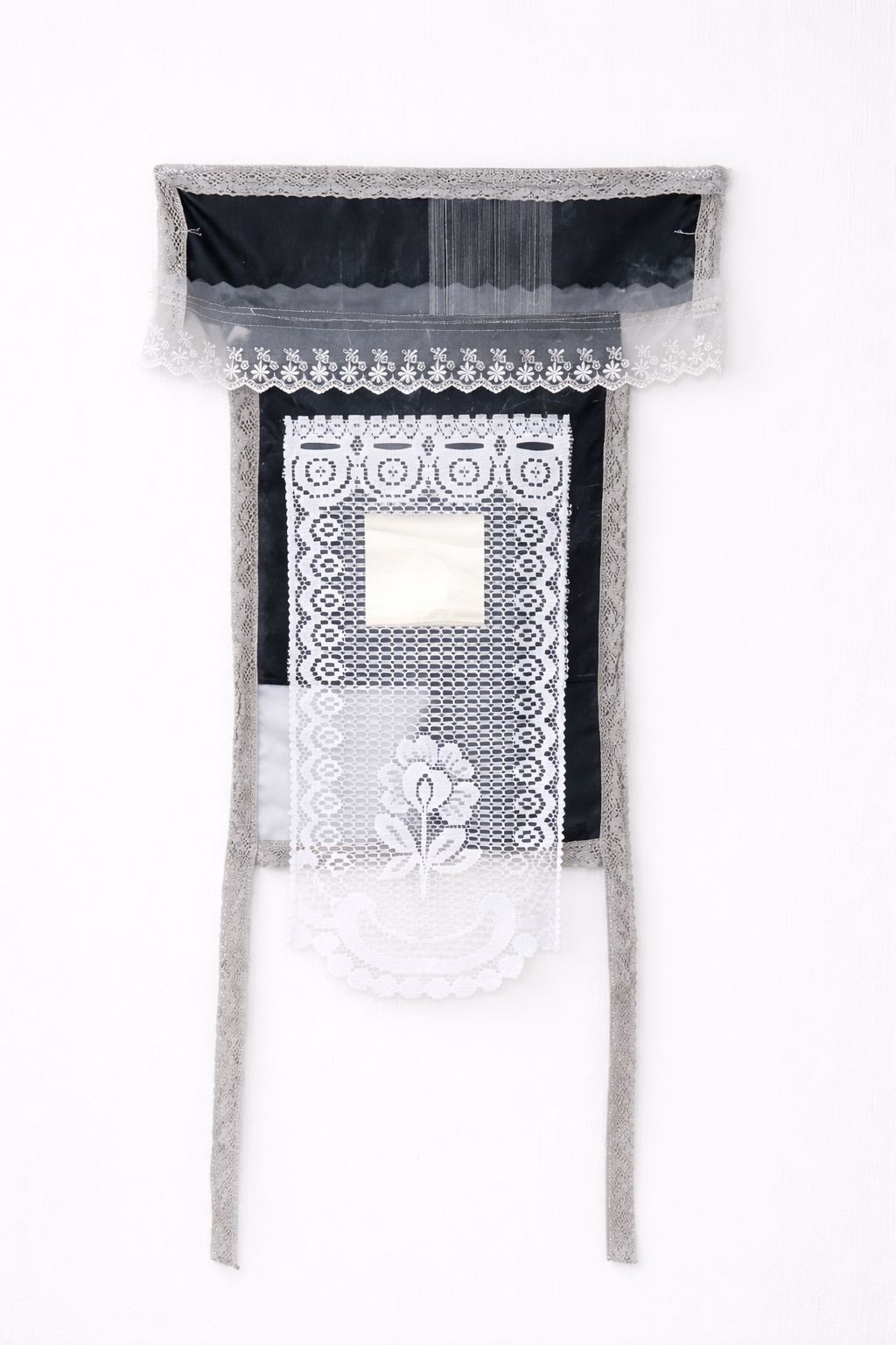 Шерстяное панно Полины Коваль, черная фигура на сером фоне, 160×150 см